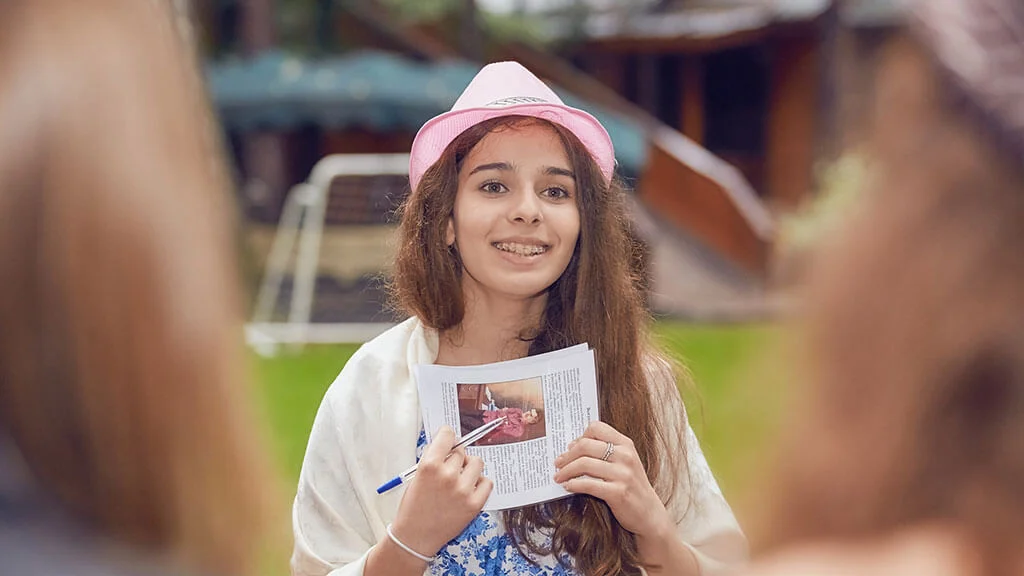 Репортёр, пишет статью о съёмках.